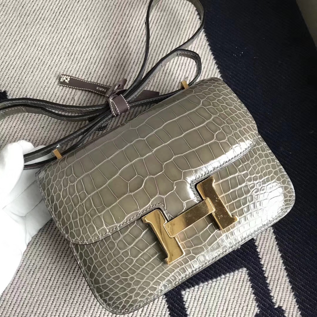 Constance 18 Constance 空姐包 Hermès(爱马仕)Constance空姐包 Alligator shiny 亮面鳄鱼 ck81 斑鸠灰 金扣 品相完美 顶级货 18cm 2019年4月19日 0
