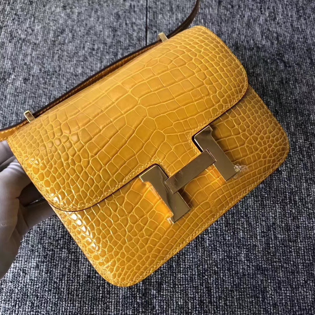 Constance 18 Constance 空姐包 Hermès(爱马仕)Constance 空姐包 Alligator shiny 亮面鳄鱼 9D 琥珀黄 Ambre 金扣 18cm 现货 2019年11月7日 0