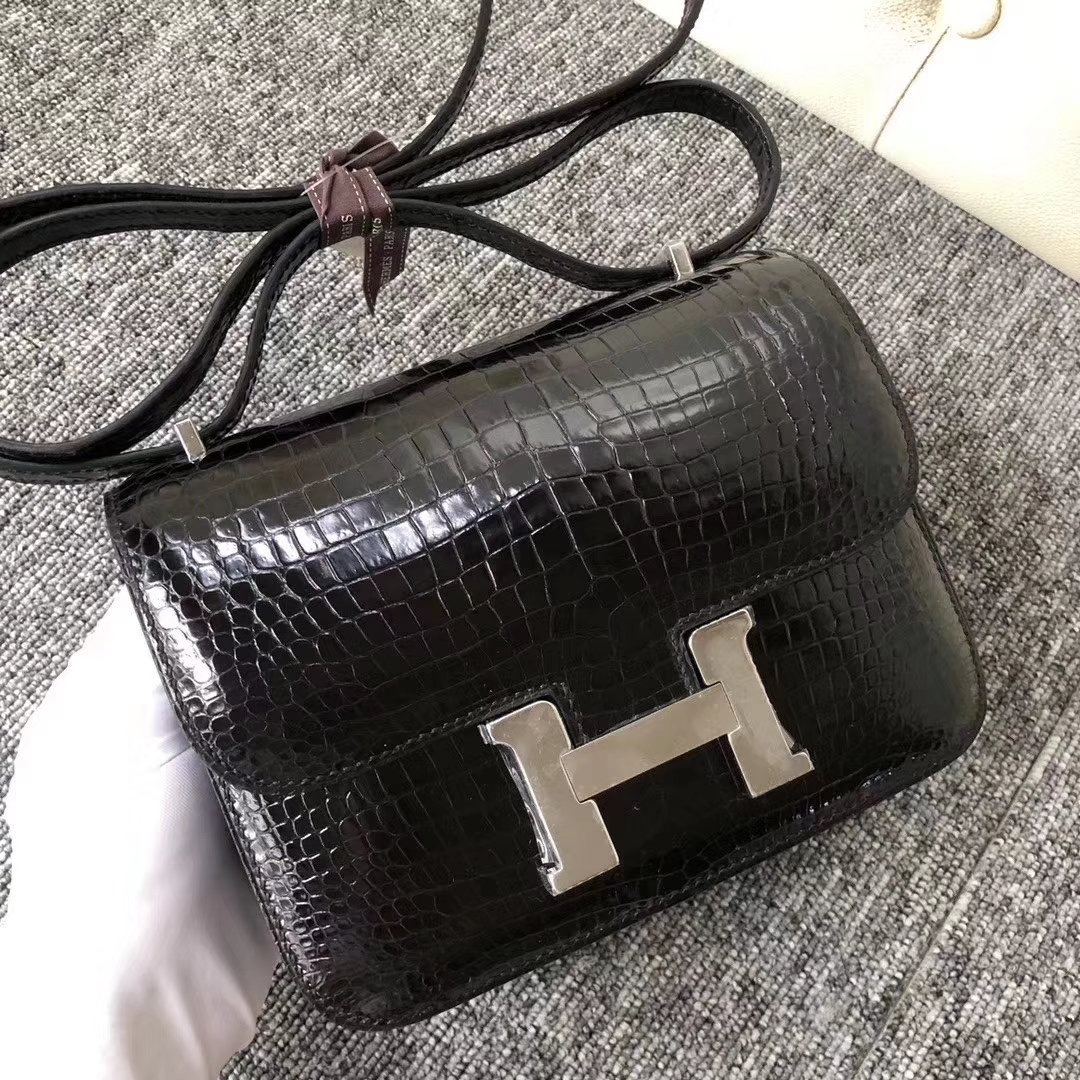 Constance 18 Constance 空姐包 Hermès(爱马仕)Constance 空姐包 Porosus shiny 澳洲亮面鳄鱼 ck89 黑色 银扣 18cm 现货 2019年11月7日 0