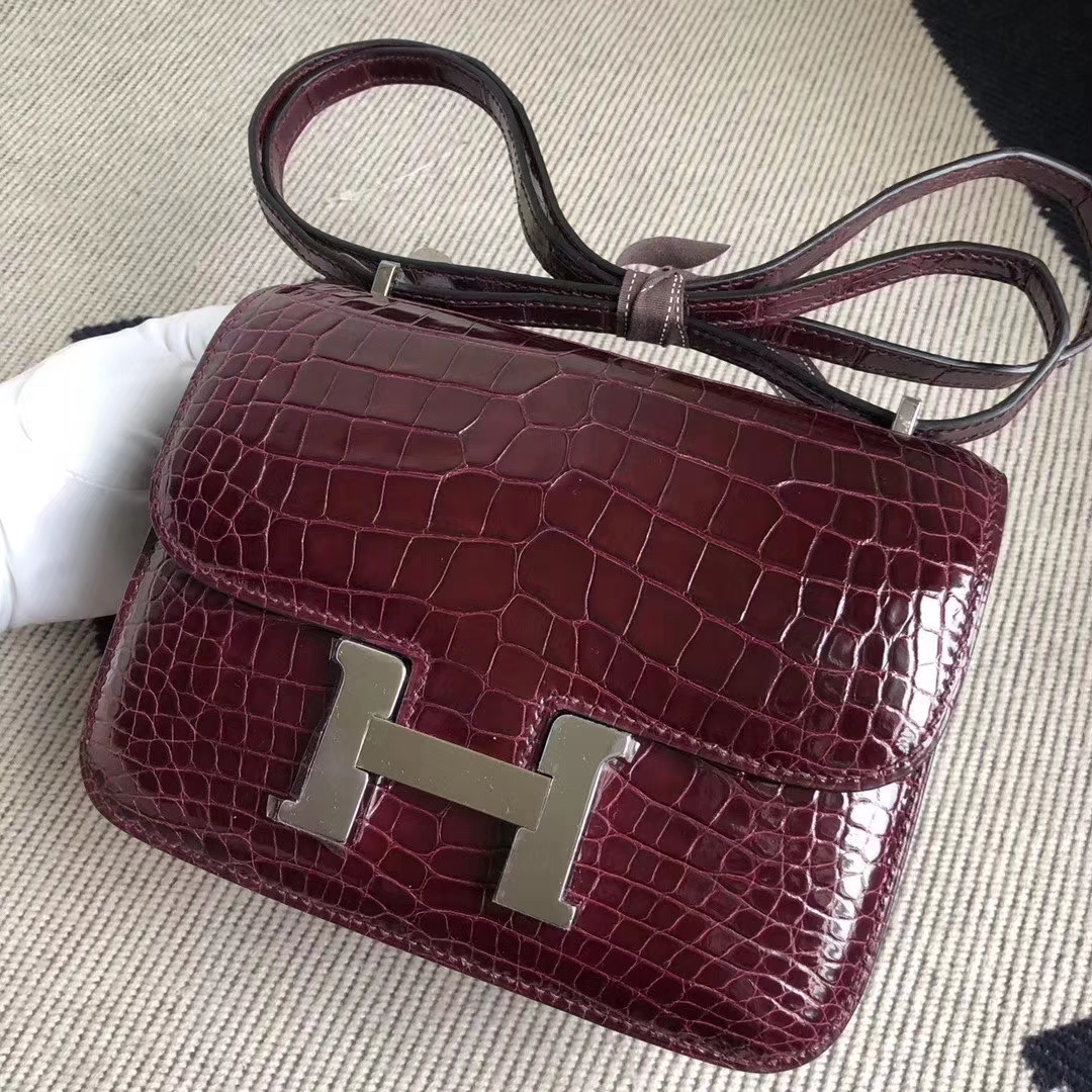 Constance 18 Constance 空姐包 Hermès(爱马仕)Constance 空姐包 Alligator shiny 亮面鳄鱼 ck57 波尔多酒红 银扣 18cm 现货 2019年11月7日 0