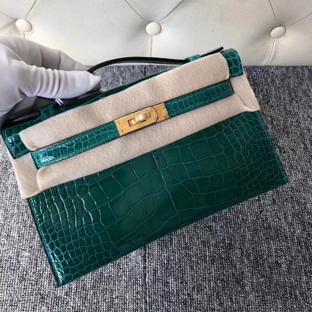 Mini Kelly 1 Mini Kelly 迷你凯莉 Hermès(爱马仕)Mini Kelly Pochette 22cm 亮面方块 美洲鳄鱼 6Q翡翠绿 Vert Emeraude 金扣 2020年1月14日 0
