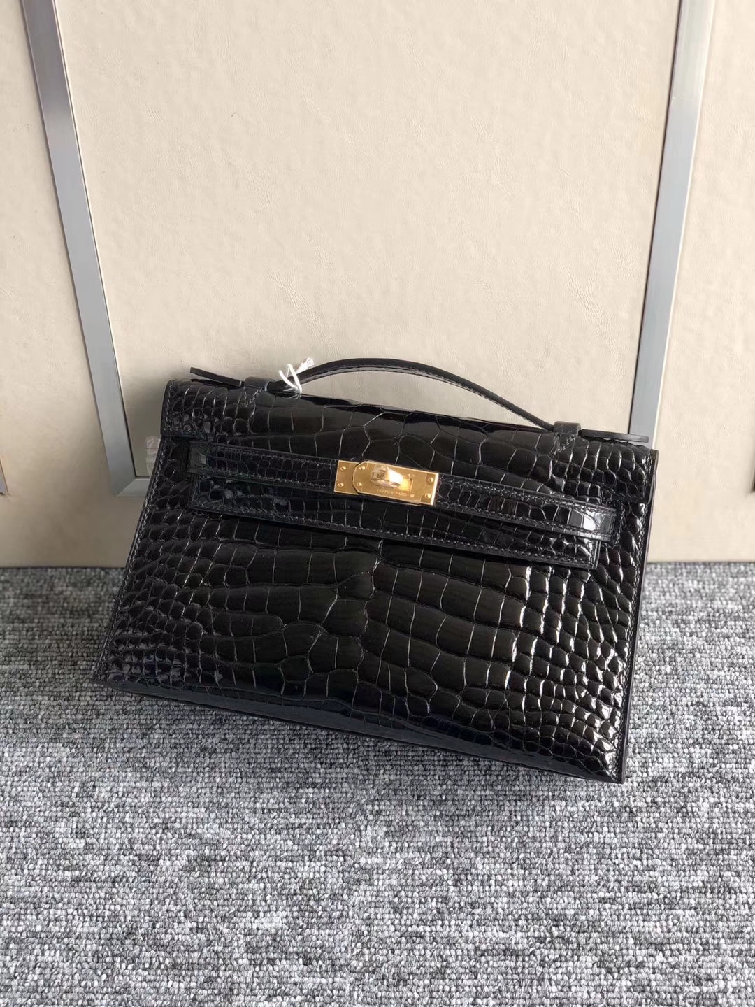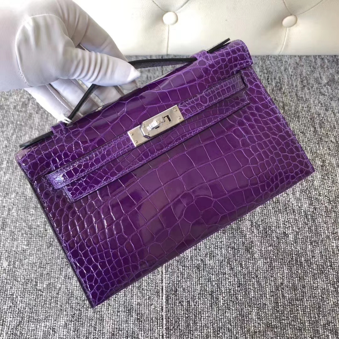 Mini Kelly 1 Mini Kelly 迷你凯莉 Hermès(爱马仕)Mini Kelly Pochette 22cm 亮面方块 美洲鳄鱼 黑色 银扣 手拿包 晚宴包 2020年1月14日 0