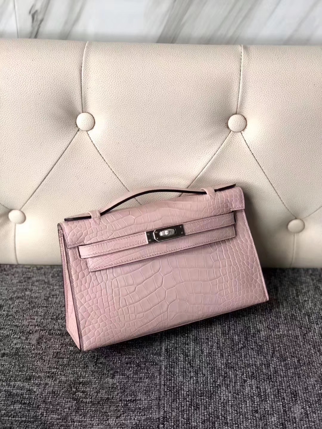 Mini Kelly 1 Mini Kelly 迷你凯莉 Hermès(爱马仕)Mini Kelly Pochette 22cm 雾面方块 美洲鳄鱼 Matte Alligator Crocodile 3Q粉 银扣 2020年1月14日 0