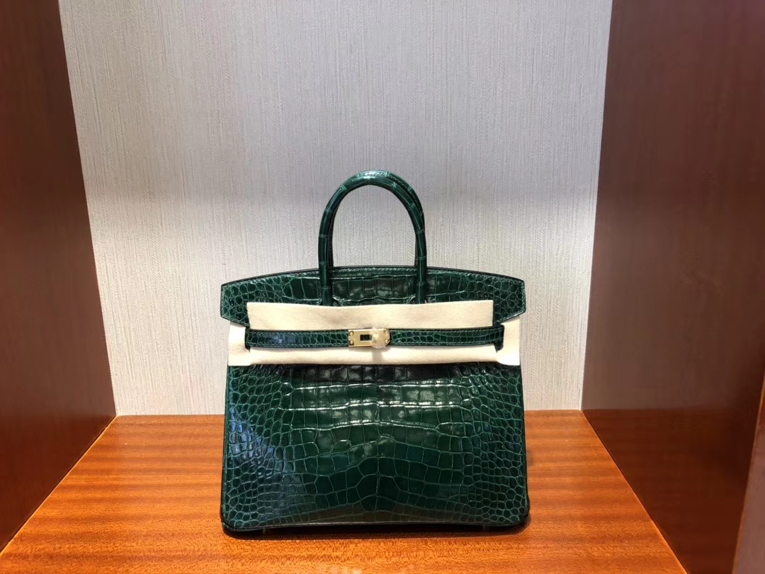 Birkin 25 Birkin 铂金包 Niloticus 尼罗鳄 皮料 Hermès(爱马仕)Birkin 25cm Alligator shiny 亮面鳄鱼 ck67 祖母绿 Vert fonce 金扣 顶级手缝 现货 2020年3月31日 0