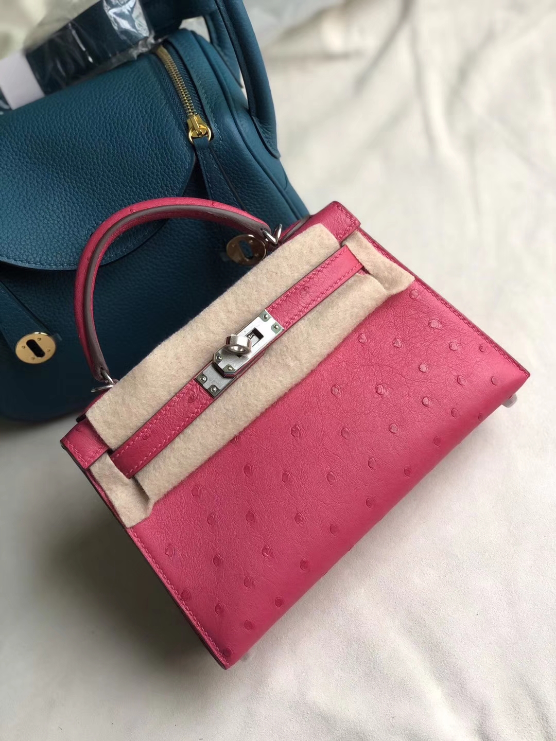 Mini Kelly 2 Mini Kelly 迷你凯莉 Ostrich 鸵鸟皮 皮料 Hermès(爱马仕)Minikelly ll Ostrich kk鸵鸟 5j 桃红 银扣 顶级手缝 现货 2020年3月31日 0