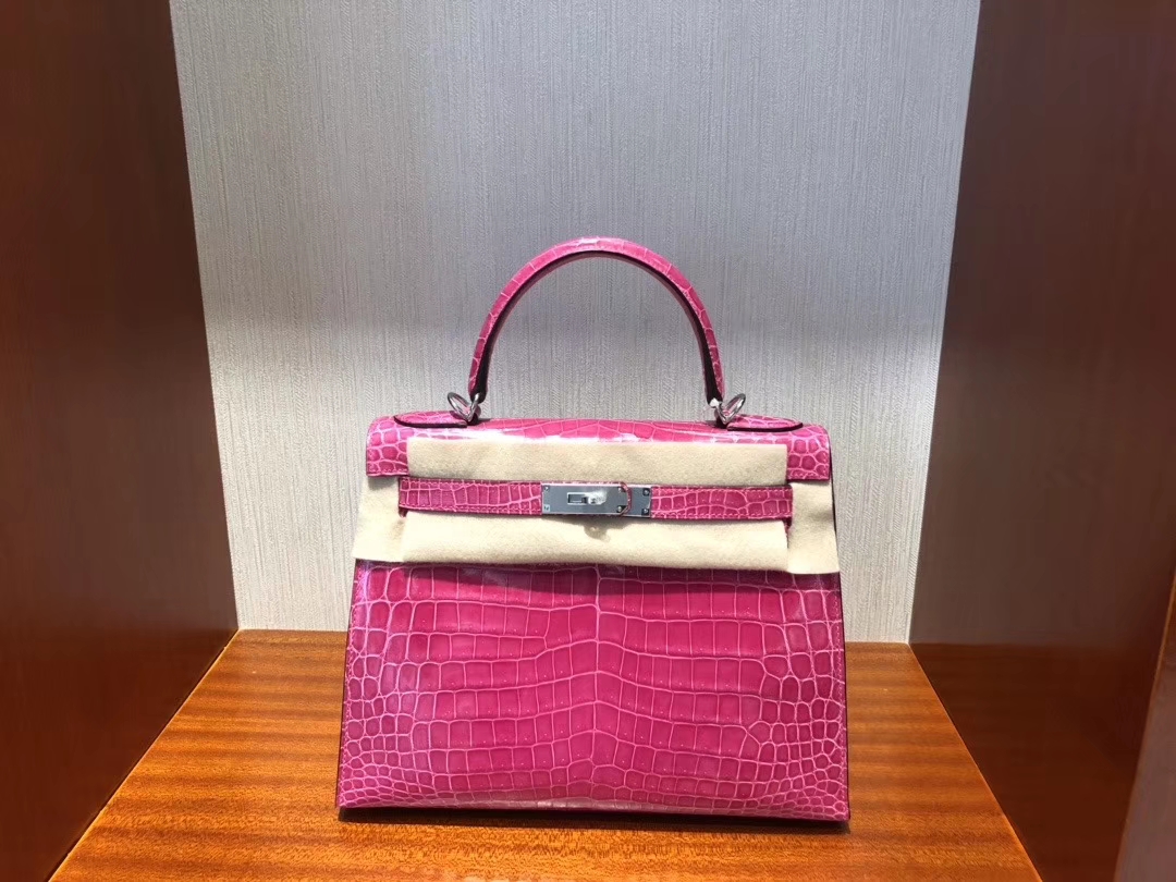 Kelly 28 Kelly 凯莉包 Niloticus 尼罗鳄 皮料 Hermès(爱马仕)Kelly 凯莉包 Crocodile shiny 亮面鳄鱼 5J 桃红 桃粉 银扣 顶级手缝 超美 28cm 2020年3月31日 0
