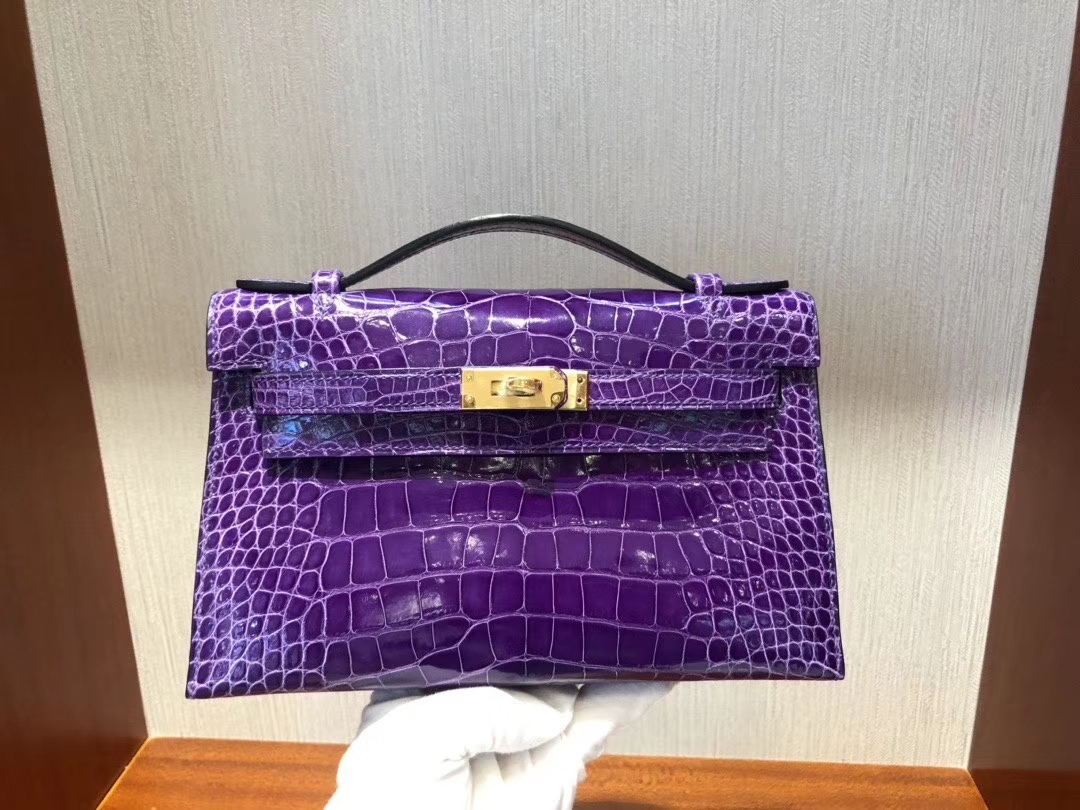 Mini Kelly 1 Mini Kelly 迷你凯莉 Niloticus 尼罗鳄 皮料 Hermès(爱马仕)Mini kelly pochette Alligator shiny 亮面鳄鱼 5L 极度紫 金扣 手拿包 晚宴包 22cm 现货 2020年3月31日 0