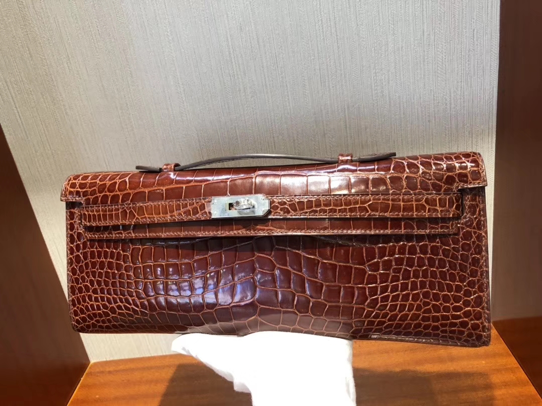 Porosus 湾鳄 Wallet 钱包 皮料 Hermès(爱马仕)Kelly cut 31cm Porosus shiny 亮面澳洲湾鳄鳄鱼 ck31 蜜糖棕 Miel 银扣 手拿包 晚宴包 现货 2020年3月31日 0