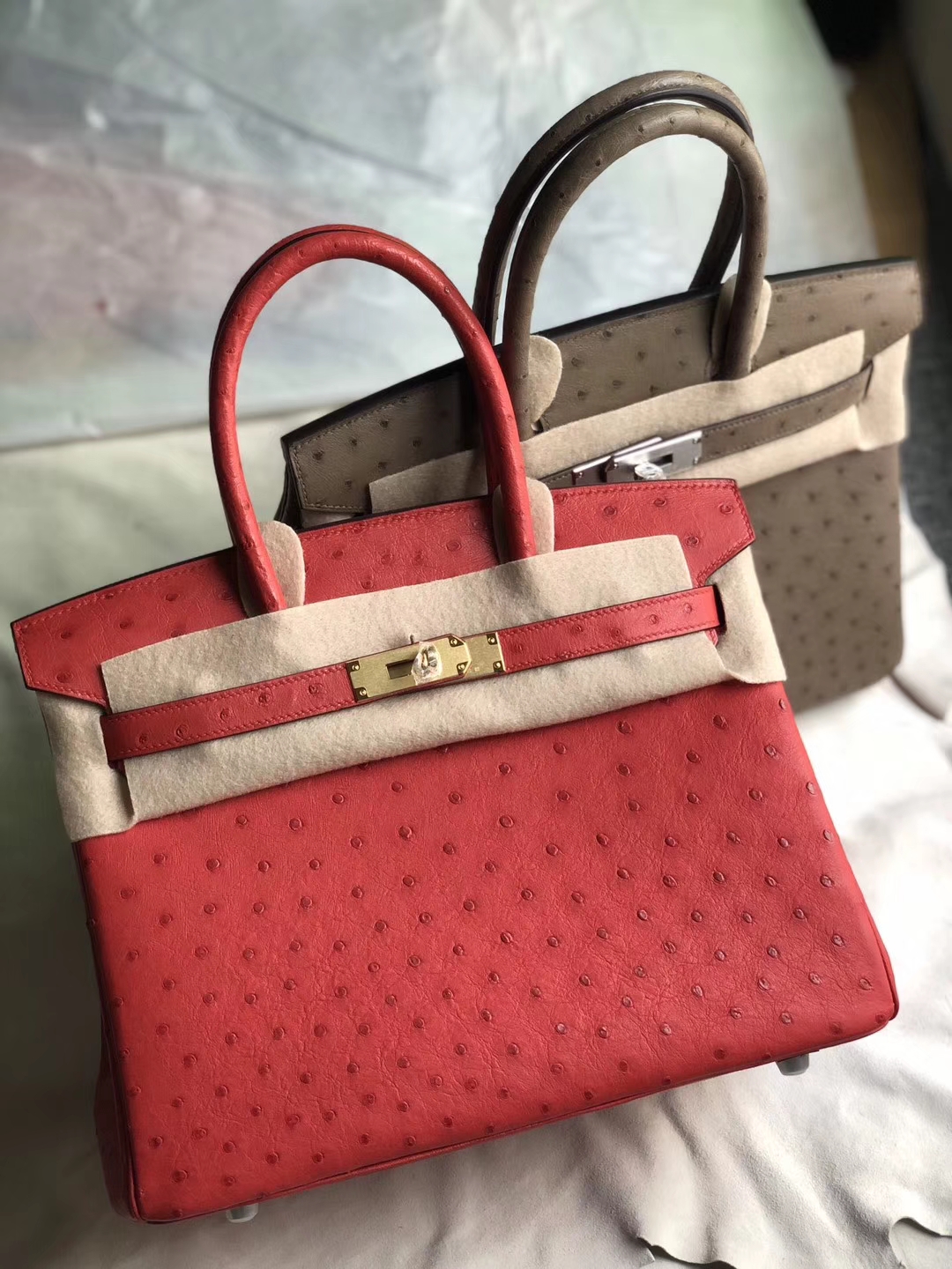 Birkin 30 Birkin 铂金包 Ostrich 鸵鸟皮 皮料 Hermès(爱马仕)Birkin 30cm Ostrich kk鸵鸟 Q5 国旗红 Rouge casaque 金扣 2020年3月27日 0
