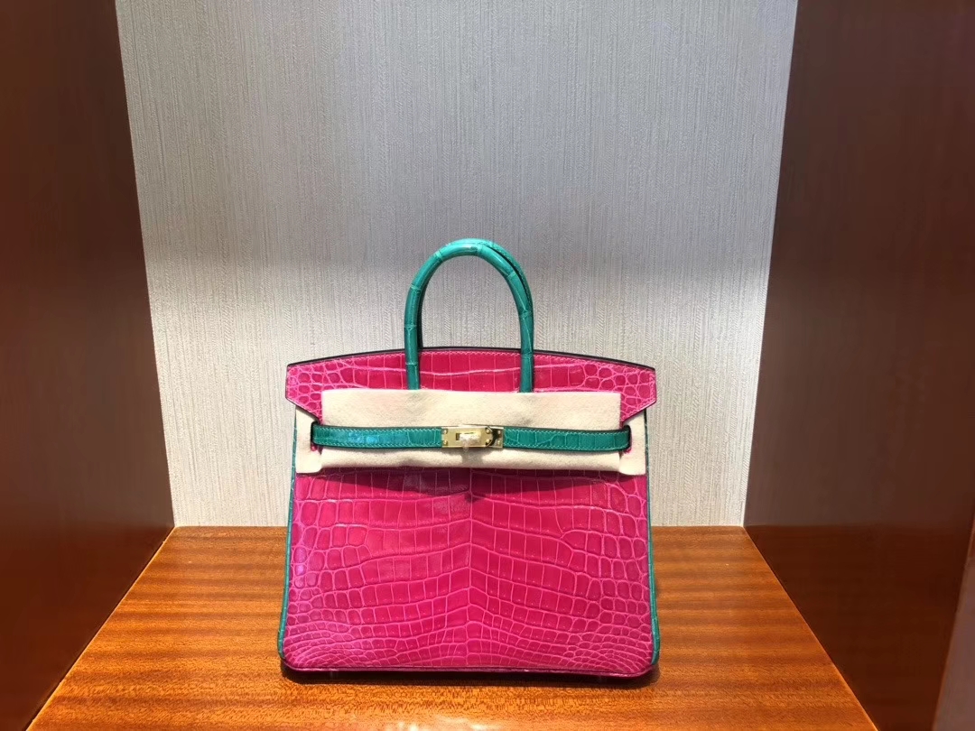 Birkin 25 Birkin 铂金包 Niloticus 尼罗鳄 皮料 Hermès(爱马仕)Birkin 25cm Crocodile shiny 亮面鳄鱼 J5 天方夜谭粉紫拼6Q翡翠绿 金扣 马蹄印 超美拼色 2020年3月31日 0