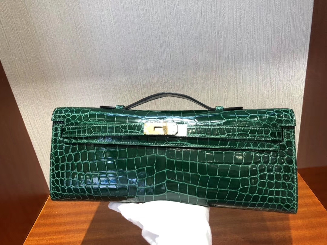 Porosus 湾鳄 Wallet 钱包 皮料 Hermès(爱马仕)Kelly cut 31cm Porosus shiny 亮面澳洲湾鳄鳄鱼 ck67 祖母绿 vert fonce 金扣 手拿包 晚宴包 现货 2020年3月31日 0