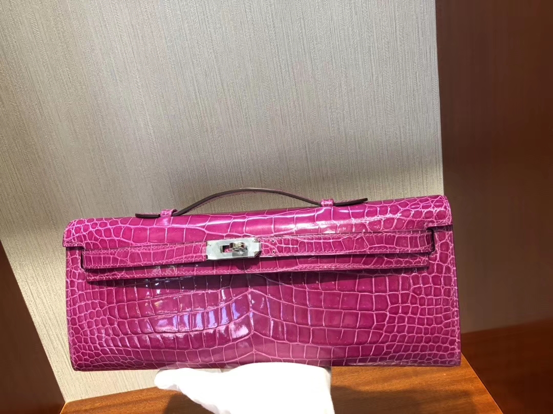 Porosus 湾鳄 Wallet 钱包 皮料 Hermès(爱马仕)Kelly cut 31cm Porosus shiny 亮面澳洲湾鳄鳄鱼 J5 天方夜谭粉紫 银扣 手拿包 晚宴包 现货 2020年3月31日 0