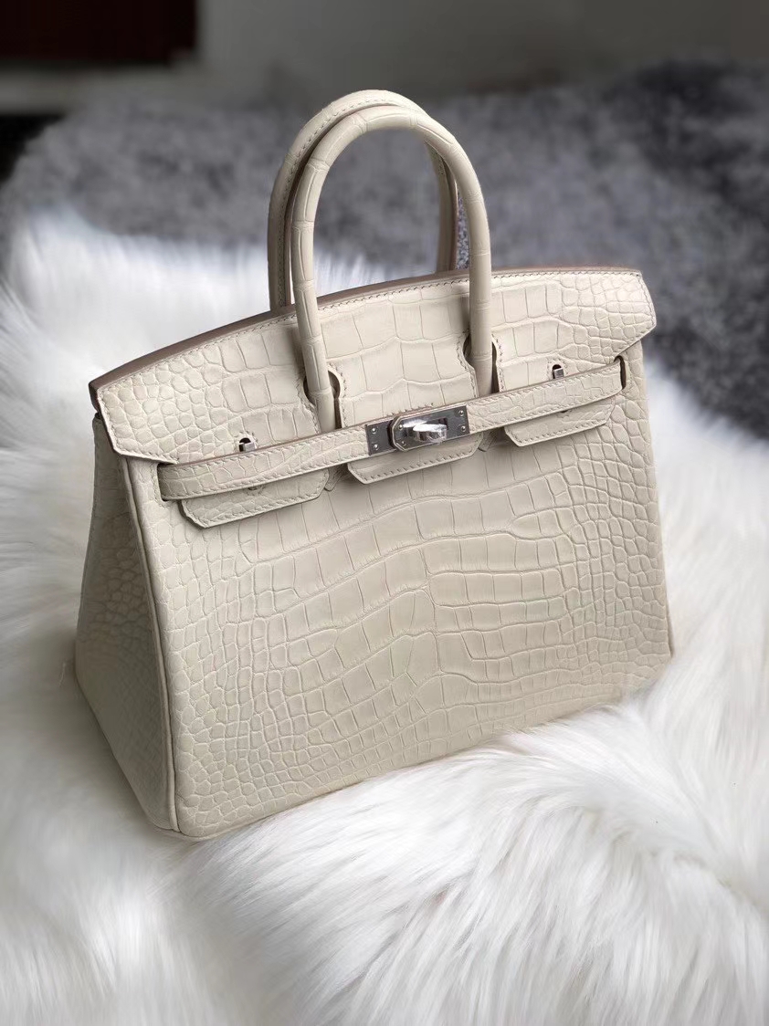 Alligator 美洲鳄 Birkin 25 Birkin 铂金包 Hermès(爱马仕)Birkin 25cm Alligator matt 雾面鳄鱼 8L 奶油白 Beton 银扣 2020年7月14日 0