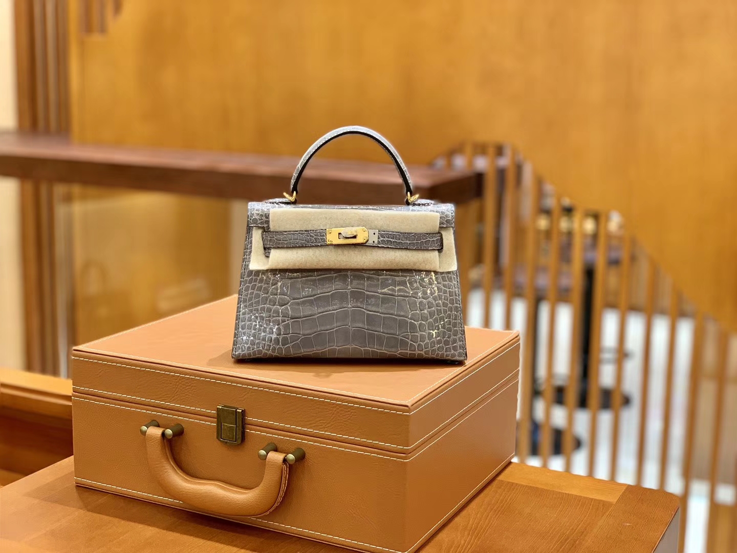 Mini Kelly 2 Mini Kelly 迷你凯莉 Hermès(爱马仕)Mini Kelly 迷你凯莉 风暴蓝 亮面鳄鱼 一级 顶端级别 美洲 臻品级别 金银扣 19cm 2019年12月19日 0
