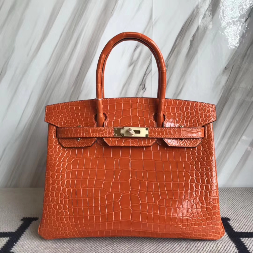 Birkin 30 Birkin 铂金包 Hermès(爱马仕)Birkin30cm shiny porosus crocodile 澳洲湾鳄 8V栗罂橙 原厂御用HCp 蜡线全手工 金扣 2018年12月7日 0